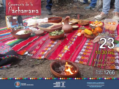 Ceremonia de la Pachamama en la plaza 30.000 Compañeros