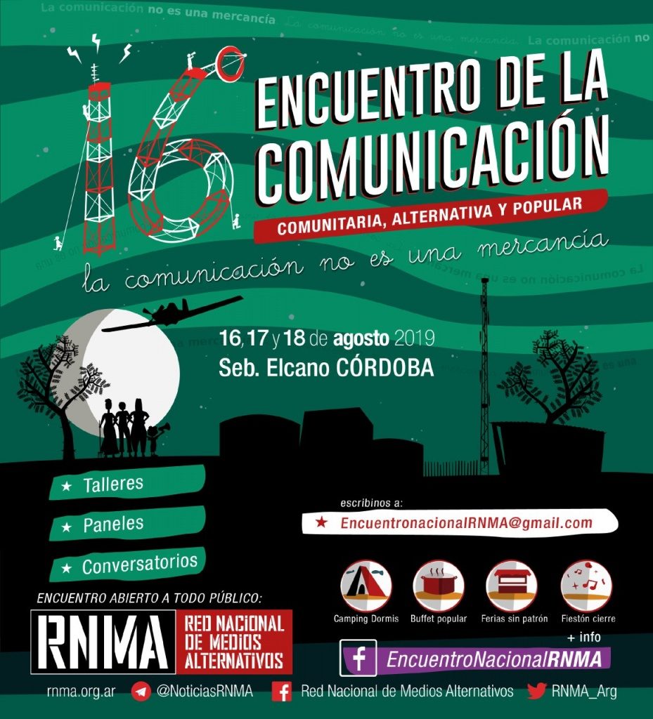 Evento y link de inscripción : https://www.eventbrite.com.ar/e/16-encuentro-de-la-red-nacional-de-medios-alternativos-2019-tickets-62729980059