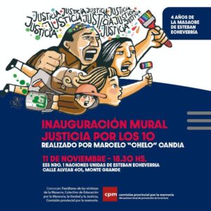 La masacre de la Comisaría 3ª de Esteban Echeverría fue la peor ocurrida en comisarías de todo el país. Diez personas detenidas bajo custodia del estado murieron en un incendio, dos en el lugar y ocho en hospitales. Recién ahora, a cuatro años de los hechos, los policías quedaron formalmente acusados de estrago culposo en concurso real con incumplimiento de deberes de funcionario público, y serán indagados el próximo 14 de noviembre. Al cumplirse este aniversario una organización docente impulsó junto a la Comisión Provincial por la Memoria la realización de un mural para recordar a las víctimas.