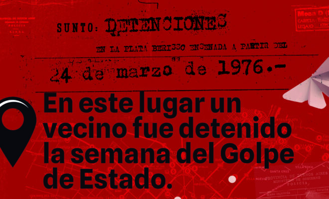 Home›Archivos›INTERVENCIÓN URBANA EN LA CAPITAL BONAERENSE A 50 AÑOS DEL GOLPE Asunto: “Detenciones en La Plata, Berisso y Ensenada a partir del 24 de marzo de 1976”