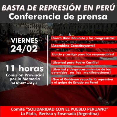 INFORME SOBRE LA VULNERACIÓN DE DDHH EN PERÚ Realizan una conferencia de prensa en apoyo al pueblo peruano