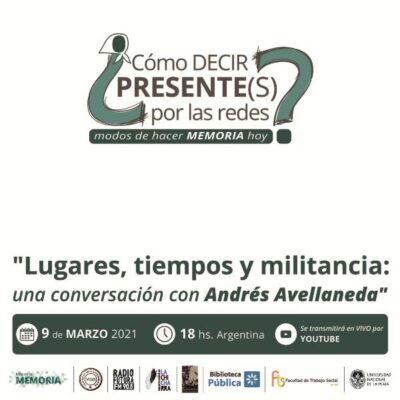 CONVOCAN A LA CHARLA Lugares, tiempos y militancia: una conversación con Andrés Avellaneda