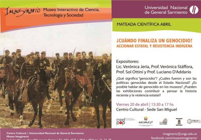 El viernes 20 de abril de 15.30 a 17 hs se desarrollará la mateada científica: ¿cuándo finaliza un genocidio? Acción estatal y resistencia indígena ... -