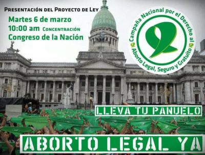Se presentará por séptima vez el martes 6 de marzo de la mano de la Campaña nacional por el derecho al aborto legal, seguro ... -