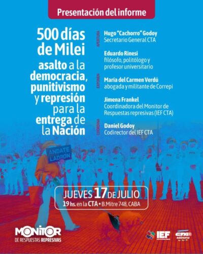Este jueves 17 de julio a las 19 hs en la CTA se presenta (Bartolomé Mitre 748) un nuevo informe del Monitor de Respuestas ... -