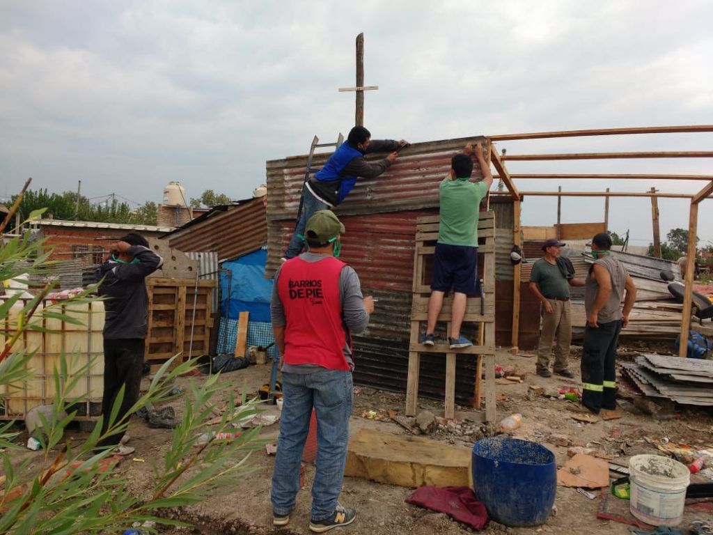 Este viernes hombres y mujeres militantes de la organización comenzaron a reconstruir la casa de Shirley con los restos que quedaron en el terreno tras el desalojo. “Pudimos cerrar un cuartito de dos por tres metros, para tener un techo porque se viene la lluvia. Y yo estaba durmiendo en un sillón, cubierta por una chapa. Pero desde que pasó casi no pude dormir nada”, dice Shirley.