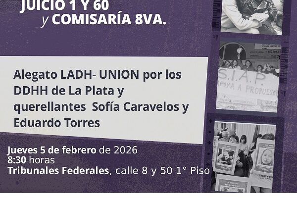 Los tribunales vuelven a ponerse en marcha tras el receso de enero; el jueves 5 a las 8:30 hs se retoman las audiencias del juicio donde se investigan los hechos ocurridos en el centro clandestino de detención y exterminio conocido como 1 y 60, primer eslabón del plan represivo montado por las fuerzas armadas y de seguridad en La Plata durante la última dictadura militar, y en la Comisaría 8°.