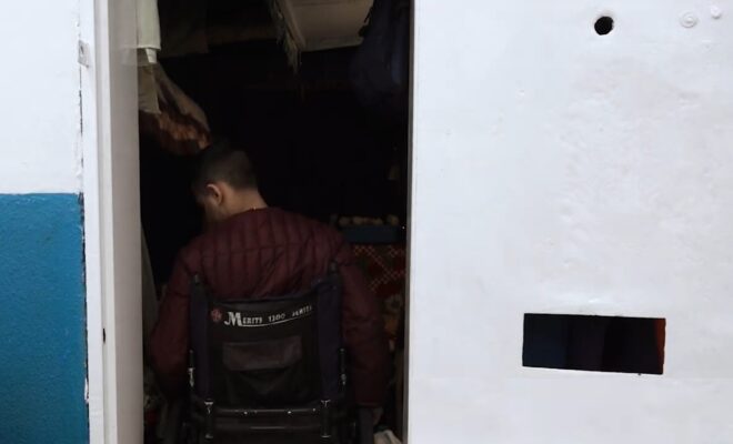 Gonzalo muestra una sonda y dice: “Esto se usa y se tira y yo la tengo que usar ocho veces al día, porque mi mamá me trae una caja y la tengo que cuidar”. Lo único que puede hacer es estar acostado, por la falta de rampas no puede hacer actividades, y quienes lo cuidan son sus compañeros, los otros internos.