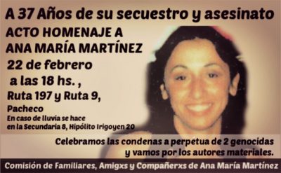 La CPM participará de la jornada que organiza y convoca la comisión de familiares, amigos y compañeros de Ana María Martínez. En esta ocasión, ... -