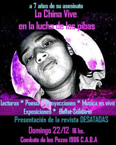 Como cada diciembre este domingo 22 a partir de las 16 hs familiares y amigos de la China Cuellar realizan actividades a 7 años ... -