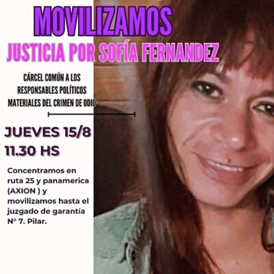 Este jueves 15 de agosto, a partir de las 11.30 hs, familiares de Sofía Fernández se movilizarán acompañados por organizaciones sociales al Juzgado de ...