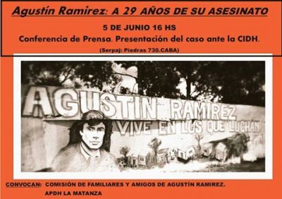 El próximo lunes 5 de junio a las 16 hs en el SERPAJ (Piedras 730) se presentará el caso de Agustín Ramírez ante la CIDH ... -