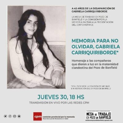 A 45 años de su detención y desaparición, se estrena la docu-ficción “Memoria para no olvidar, Gabriela Carriquiriborde” realizado por la Comisión de Archivo ... -