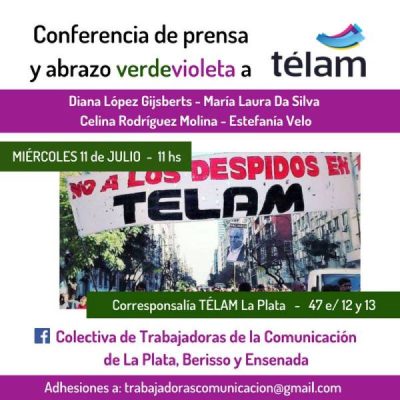 La Colectiva de trabajadoras de la comunicación La Plata, Berisso y Ensenada convoca a una conferencia de prensa este miércoles 11 de julio a ... -