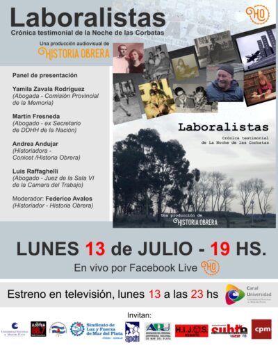 El lanzamiento del corto documental será este lunes a las 19 en el Facebook del colectivo Historia Obrera. Luego de la presentación se realizará una ... -