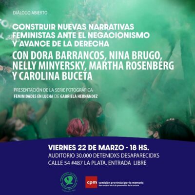 Este viernes 22 de marzo a las 18 hs en el auditorio 30.000 detenidxs desaparecidxs de la CPM (Calle 54 #487, La Plata) referentes ... -
