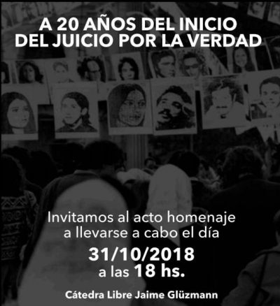 Diversas organizaciones de derechos humanos y gremiales convocan a las actividades al cumplirse 20 años del inicio del Juicio por la Verdad de La ... -