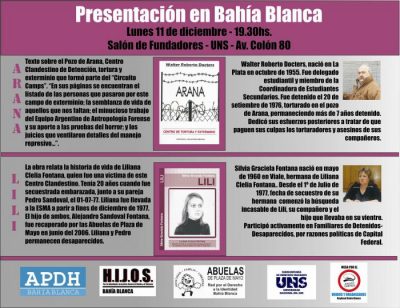 En el marco de un nuevo Aniversario del Día Internacional de los DDHH los organismos bahienses convocan a la presentación de “Arana” y “Lili” ... -