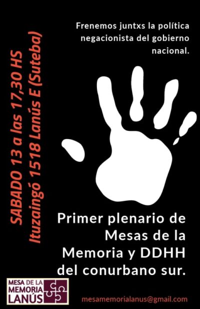 Desde la Mesa de la memoria de Lanús lanzaron una convocatoria a encontrarse para coordinar acciones y propuestas ante las últimas propuestas legislativas del ... -