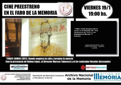El viernes 19 de enero a las 19 hs, en el Faro de la memoria, es el estreno nacional de Todos somos López. Donde ... -