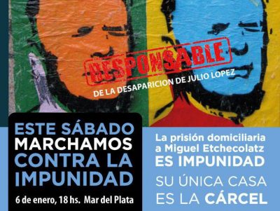 EL SÁBADO 6 DE ENERO DESDE LAS 18 La CPM junto organismos de DDHH de Mar del Plata marcharán contra la prisión domiciliaria a Etchecolatz