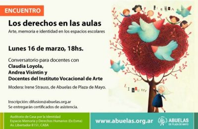 CAPACITACIÓN EN ABUELAS DE PLAZA DE MAYO Convocan a un conversatorio sobre derechos en las aulas