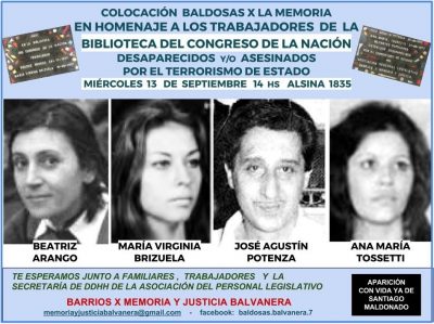 EN HOMENAJE A SUS TRABAJADORES DESAPARECIDOS / ASESINADOS Baldosas por la memoria en la biblioteca del Congreso de la Nación