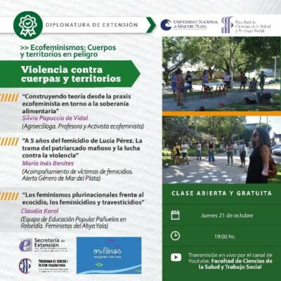 La actividad está organizada en el marco de la Diplomatura de Extensión “Ecofeminismos: Cuerpos y Territorios en Peligro”, impulsada por la colectiva Orilleras en la ...