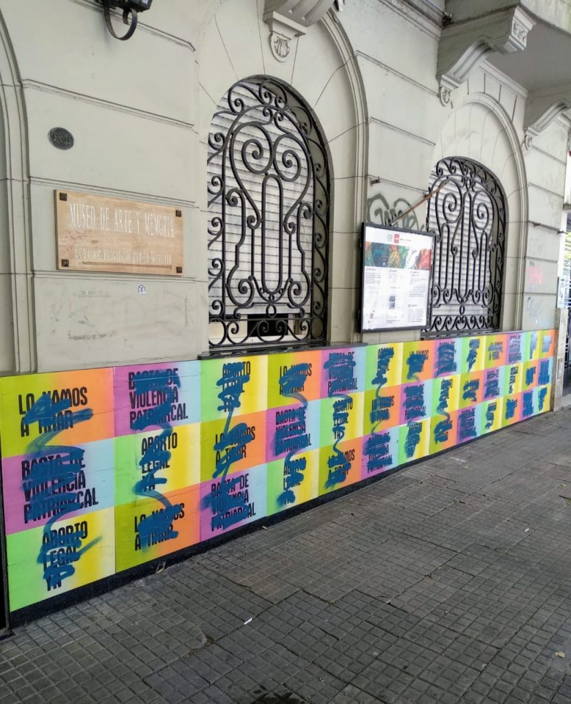 La Comisión por la Memoria denuncia un ataque perpetrado contra el museo de arte que gestiona el organismo. El pasado domingo en la fachada del edificio aparecieron pintadas que taparon una intervención pública que se había realizado en el marco de la muestra anual de ARGRA #8M Se va a caer. Quienes desde las sombras realizaron esta acción buscaron tapar las frases en defensa de los derechos de las mujeres y personas gestantes, contra la violencia machista y el sistema patriarcal.