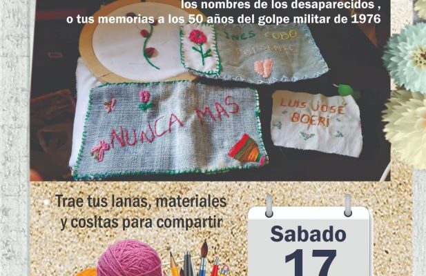 Este sábado 17 de enero en la Plaza del tango de Santa Teresita se realiza una convocatoria abierta al público general para “bordar memoria”. Desde las 18 hs las personas interesadas podrán acercarse y sumar materiales para intervenir banderines en el marco de las actividades que se irán desplegando este año por el 50 aniversario del golpe militar en nuestro país.